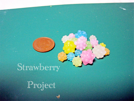レジンに市販のお菓子を詰めて型固めました。