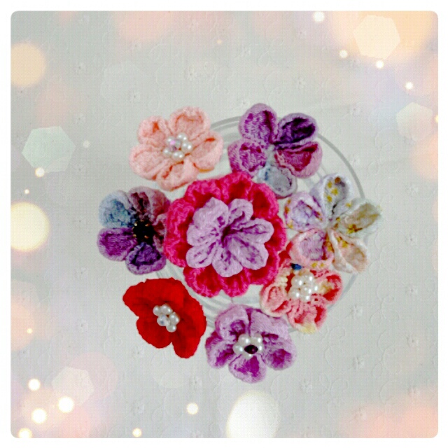 練習がてらテキストに忠実に作ったので(のわりに花びらの数間違えたりしたけれど)今度は造花使ったりビーズ使ったりしてオリジナルなものを作りたいです。