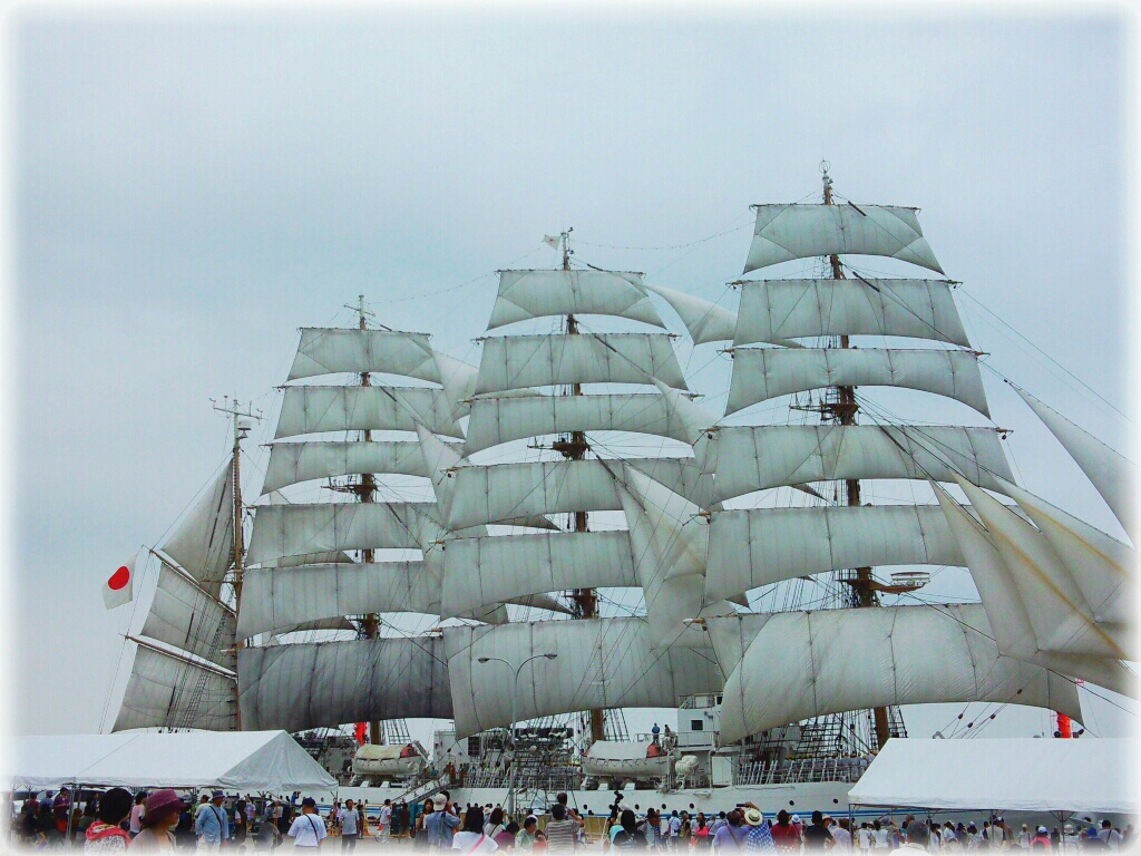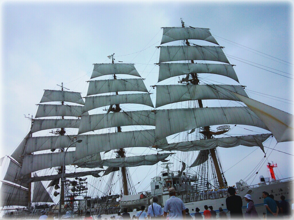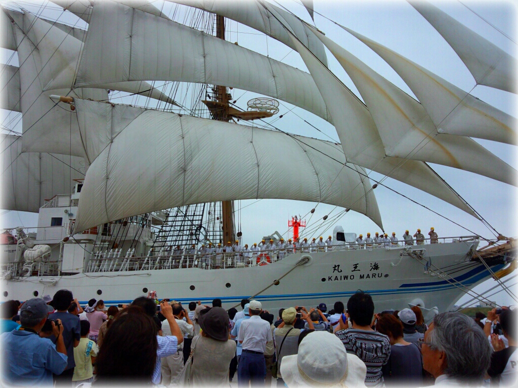 先日、ブルーインパルスが・・・と言ってたのと、同じイベントで、今日は海王丸のセイルドリルを見てきました!